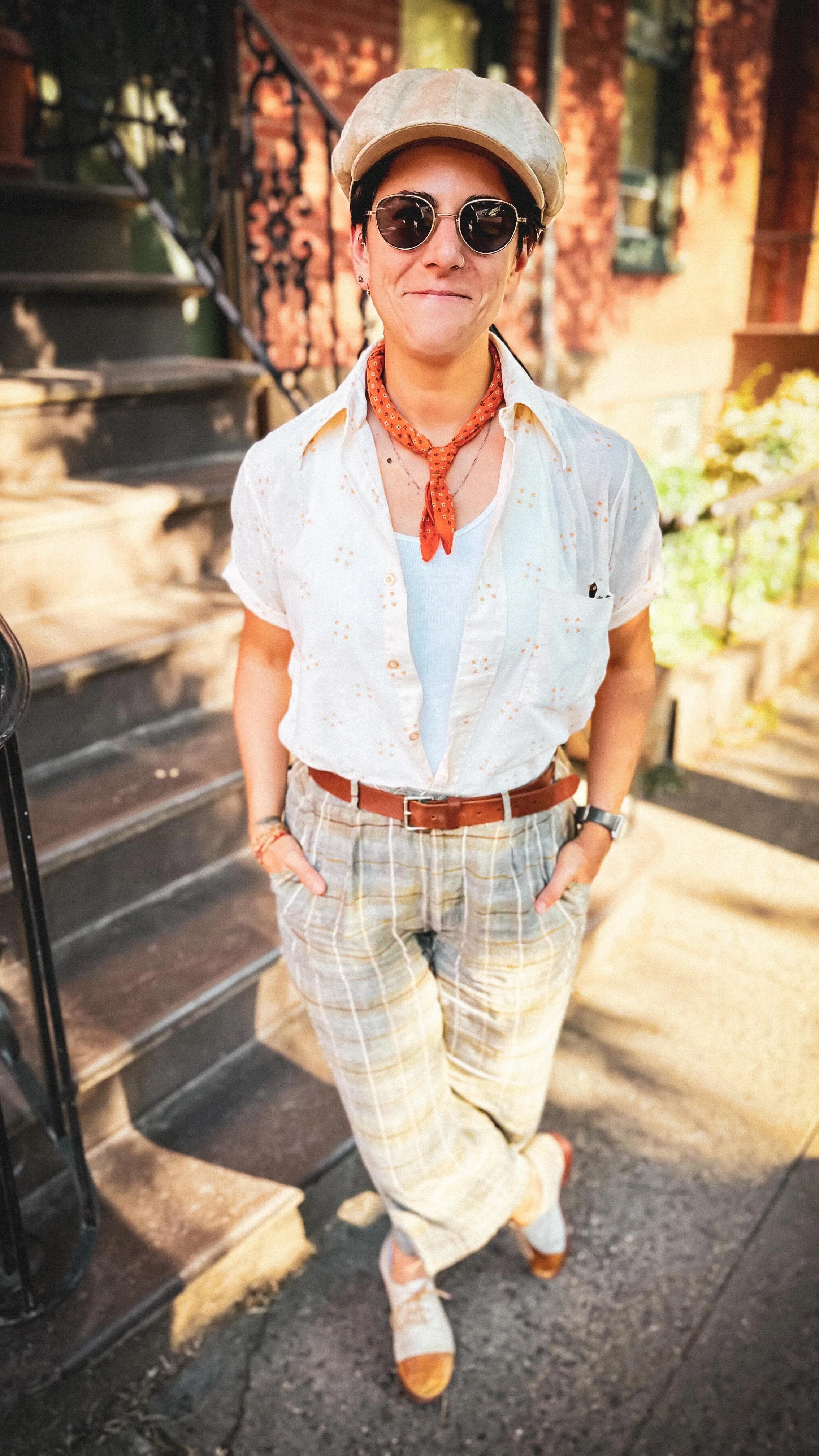Enter: Kirrin Finch. For those of you that aren’t familiar, Kirrin Finch is a queer owned business based in Brooklyn that makes beautiful menswear inspired clothing. Their clothing is not only beautiful, but conscientiously manufactured [this suit in particular is made with 40% recycled materials] and made to stand the test of time. As an artist and freelancer, I understand that the price point might be a bit high for some (*use discount code SUNDAY to help out a bit!*) – but I can assure you, it’s worth saving up for.